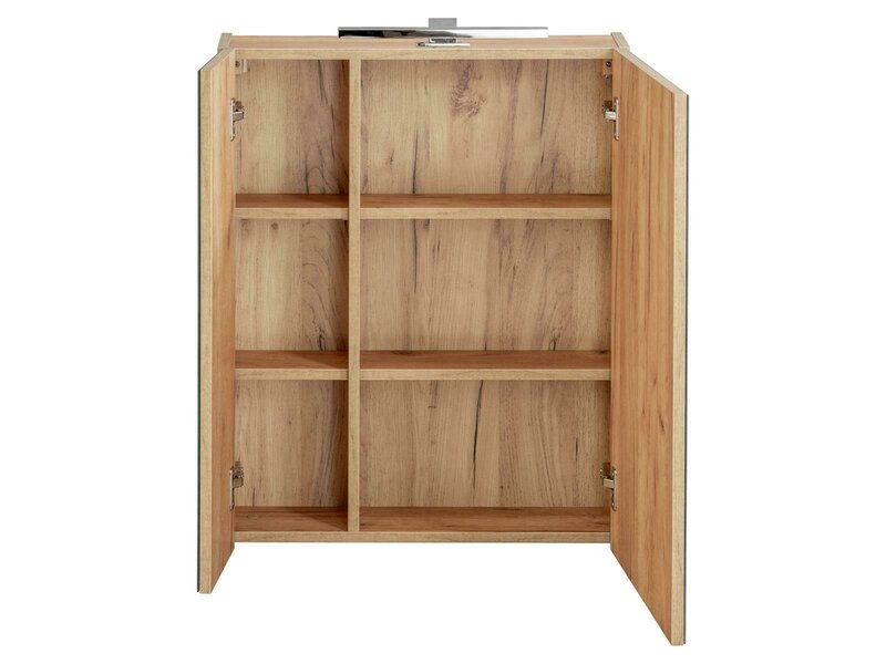 Aggiungi stile e funzionalità al tuo bagno con questo elegante armadio con specchio pensile di 60 cm. Realizzato in resistente legno e dotato di uno specchio di dimensioni generose, questo armadio offre un design moderno e pratico per organizzare i tuoi prodotti da bagno. Con una lunghezza di circa 60 cm, un'altezza di circa 75 cm e una profondità di circa 16 cm, questo armadio con specchio si adatta perfettamente anche ai bagni più piccoli, offrendo spazio di archiviazione aggiuntivo senza sacrificare lo stile.