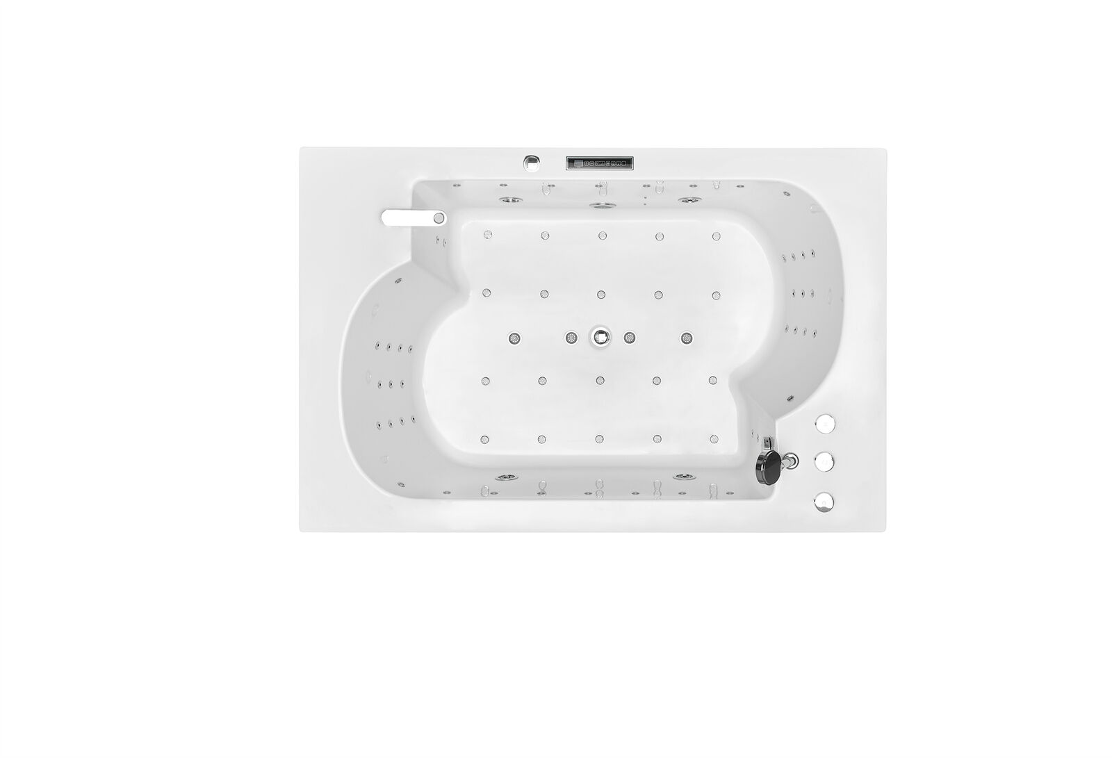 Con caratteristiche avanzate come il massaggio ad aria, i tubi autopulenti, il riscaldamento termostatico e la sterilizzazione all'ozono, questa vasca idromassaggio ti permette di godere di trattamenti di benessere completi direttamente a casa tua. Il pannello di controllo touch digitale, con funzionalità come radio FM, Bluetooth, interfaccia USB e altoparlanti integrati, ti consente di personalizzare la tua esperienza e creare l'atmosfera perfetta. Ideale per una serata di relax dopo una lunga giornata di lavoro o per coccolarti nei weekend, l'idromassaggio è il complemento perfetto per un bagno di lusso e piacere. Regalati il lusso e il comfort che meriti con questa vasca da bagno idromassaggio di alta qualità.