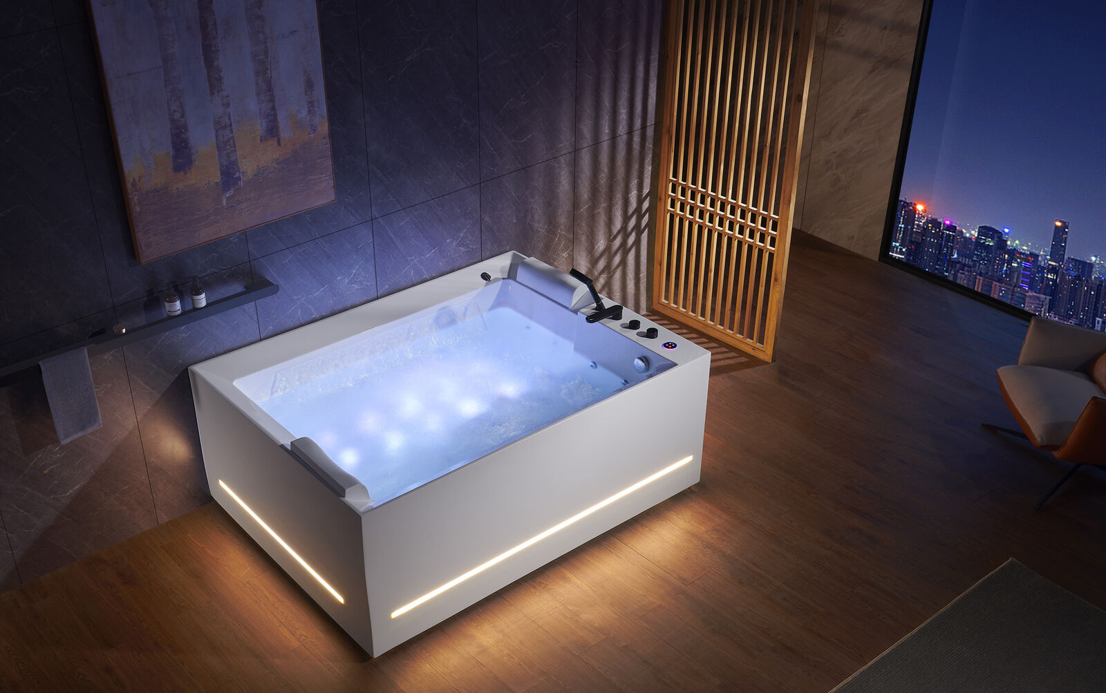 Per un'esperienza ancora più personalizzata, potenzi la tua vasca con le opzioni disponibili, tra cui la luce colorata subacquea per un'atmosfera rilassante, il massaggio con bolle d'aria per un effetto rigenerante, i tubi auto-pulenti per una manutenzione agevole, il riscaldamento termostatico per mantenere costante la temperatura dell'acqua e la sterilizzazione con ozono per una pulizia efficace. Vasca idromassaggio nella stanza è il complemento perfetto per trasformare il tuo bagno in un'oasi di benessere e relax, offrendoti una fuga dallo stress quotidiano direttamente a casa tua.