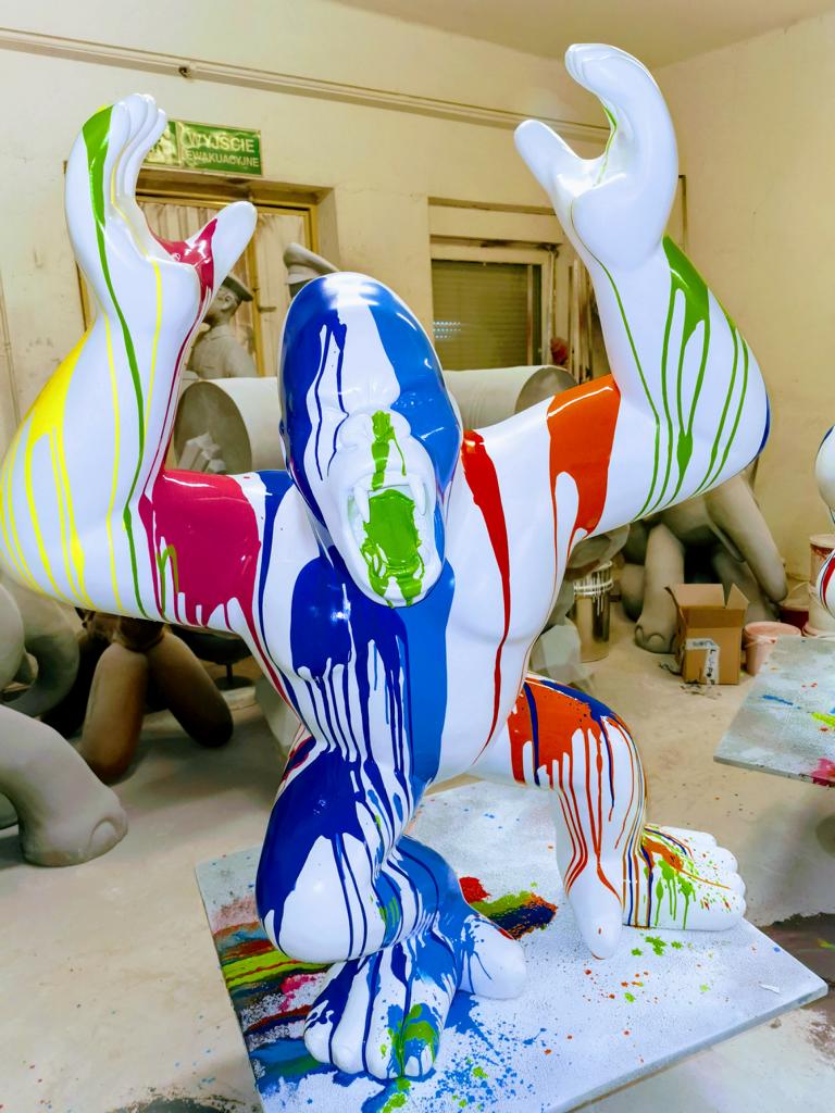 Questa nuova statua di gorilla è ideale per decorare il giardino di casa tua, il patio o qualsiasi spazio all'aperto che desideri personalizzare con un tocco di esclusività. Posizionala accanto a piante verdi per creare un contrasto interessante o mettila al centro dell'attenzione come punto focale del tuo design paesaggistico. La resistenza ai raggi UV e alle intemperie garantisce che questa statua decorativa manterrà la sua bellezza nel tempo, rendendola una scelta duratura per arricchire il tuo spazio esterno con un tocco sofisticato e unico.