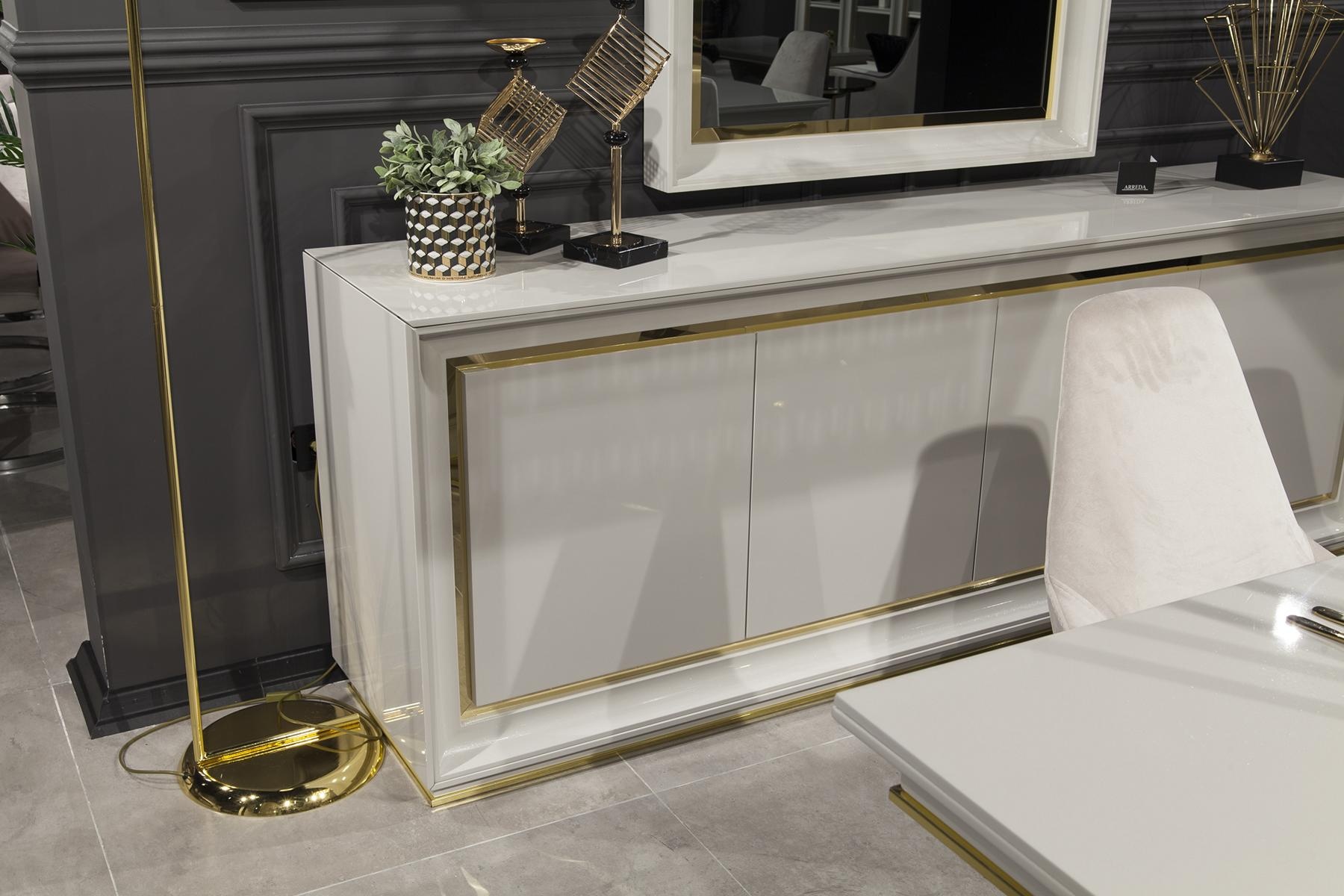Specchio lussuoso a parete in stile moderno, una vera espressione di eleganza e raffinatezza. La cornice bianca, sapientemente lavorata, incornicia un riflesso che arricchisce ogni ambiente, conferendo una luminosità senza pari. Questo pezzo distintivo non è solo un elemento funzionale, ma un'opera d'arte che trasforma gli spazi, conferendo un tocco di sofisticatezza contemporanea. La sua presenza invita a una riflessione sul design d'autore, perfetto per chi desidera un'atmosfera esclusiva e ricercata. Scegliere questo specchio significa abbracciare uno stile di vita opulento, dove ogni dettaglio contribuisce a creare un'armonia perfetta nel proprio habitat.