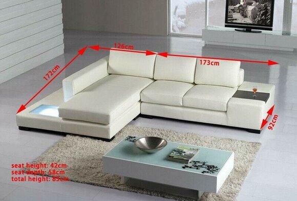 Il Divano a L, divano d'angolo, set da salotto, divano a angolo imbottito, salotto è un elegante e confortevole pezzo d'arredamento per il tuo soggiorno. Con le sue dimensioni generose e la forma a L, offre spazio sufficiente per tutta la famiglia o per accogliere ospiti con stile. Realizzato con materiali di alta qualità, questo divano angolare è progettato per durare nel tempo e garantire comfort e raffinatezza nell'ambiente domestico. La struttura interna in legno massello assicura stabilità e resistenza, mentre il tessuto in fibra di pelle premium (70% pelle / 30% poliestere) conferisce un tocco di lusso e morbidezza.