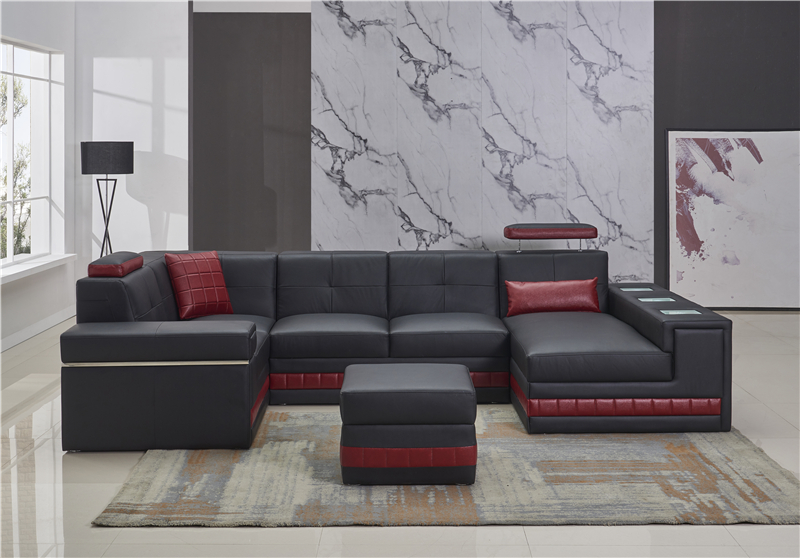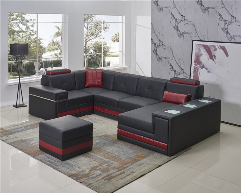 Divano ad angolo divano paesaggio abitativo a forma di U divano imbottito divano in pelle + pouf