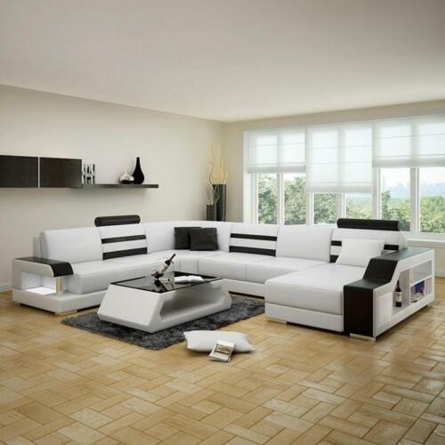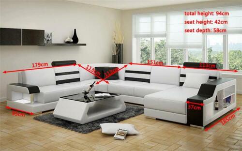 Divano ad angolo componibile a U - Set di divani in pelle con scaffale in pelle.