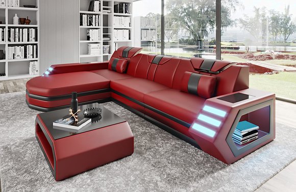 Divano angolare in pelle, divano a L, composizione angolare Belfort 4.