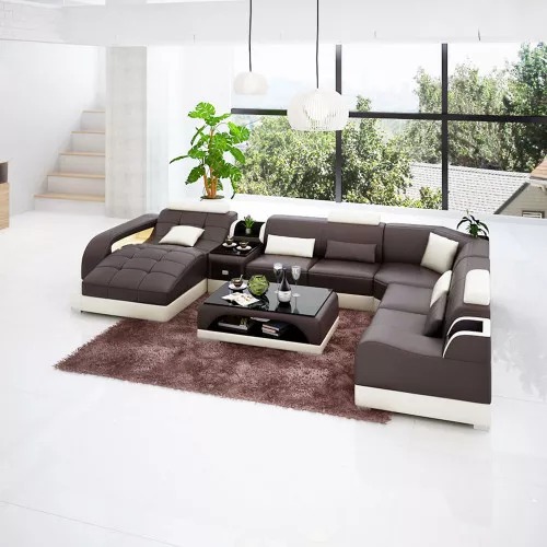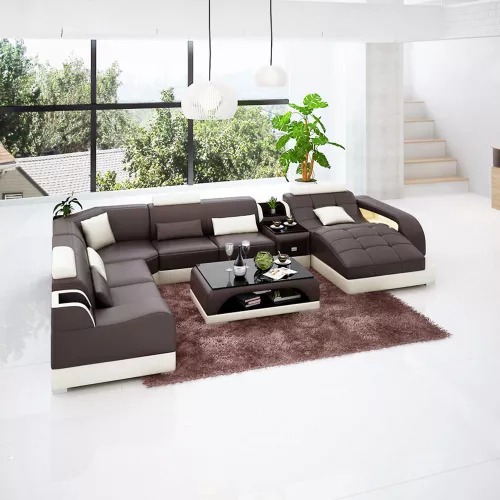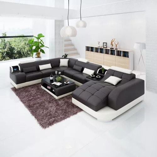 Acquista un divano ad angolo a forma di U, conveniente, con rivestimento in pelle, divano per il soggiorno