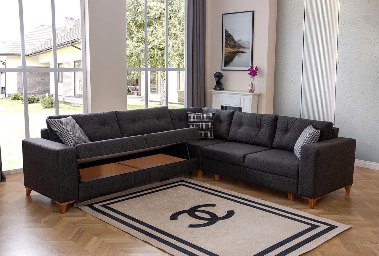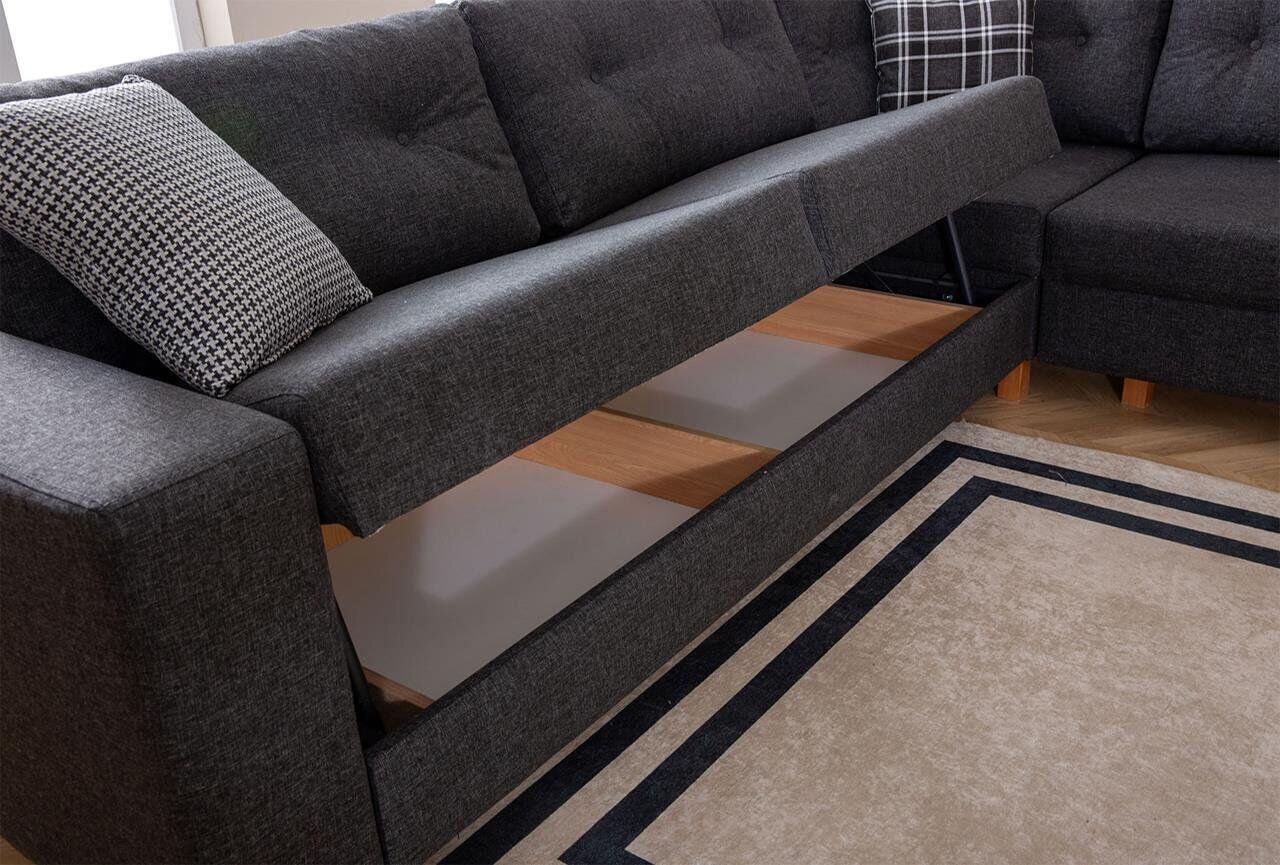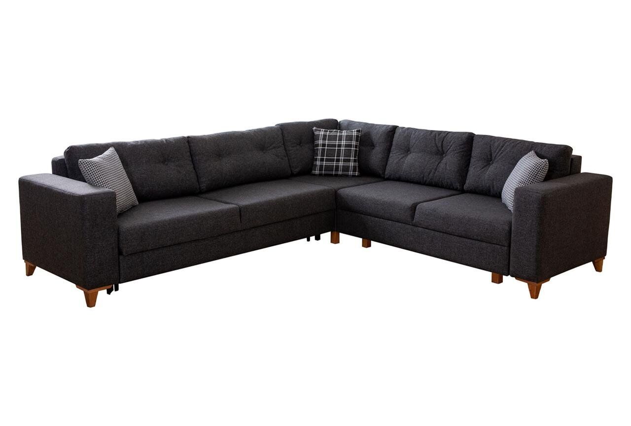 Soggiorno grigio a L, divano in stoffa di design, lusso, divano moderno: Con il nostro elegante divano ad angolo grigio, potrai trasformare il tuo soggiorno in uno spazio sofisticato e accogliente. Le dimensioni generose di ca. 280 x 250 cm offrono spazio sufficiente per rilassarsi e intrattenere gli ospiti. Realizzato con materiali di alta qualità, questo divano garantisce comfort e durata nel tempo. Il design moderno e lussuoso si abbina perfettamente a qualsiasi tipo di arredamento, donando un tocco di eleganza alla tua casa.