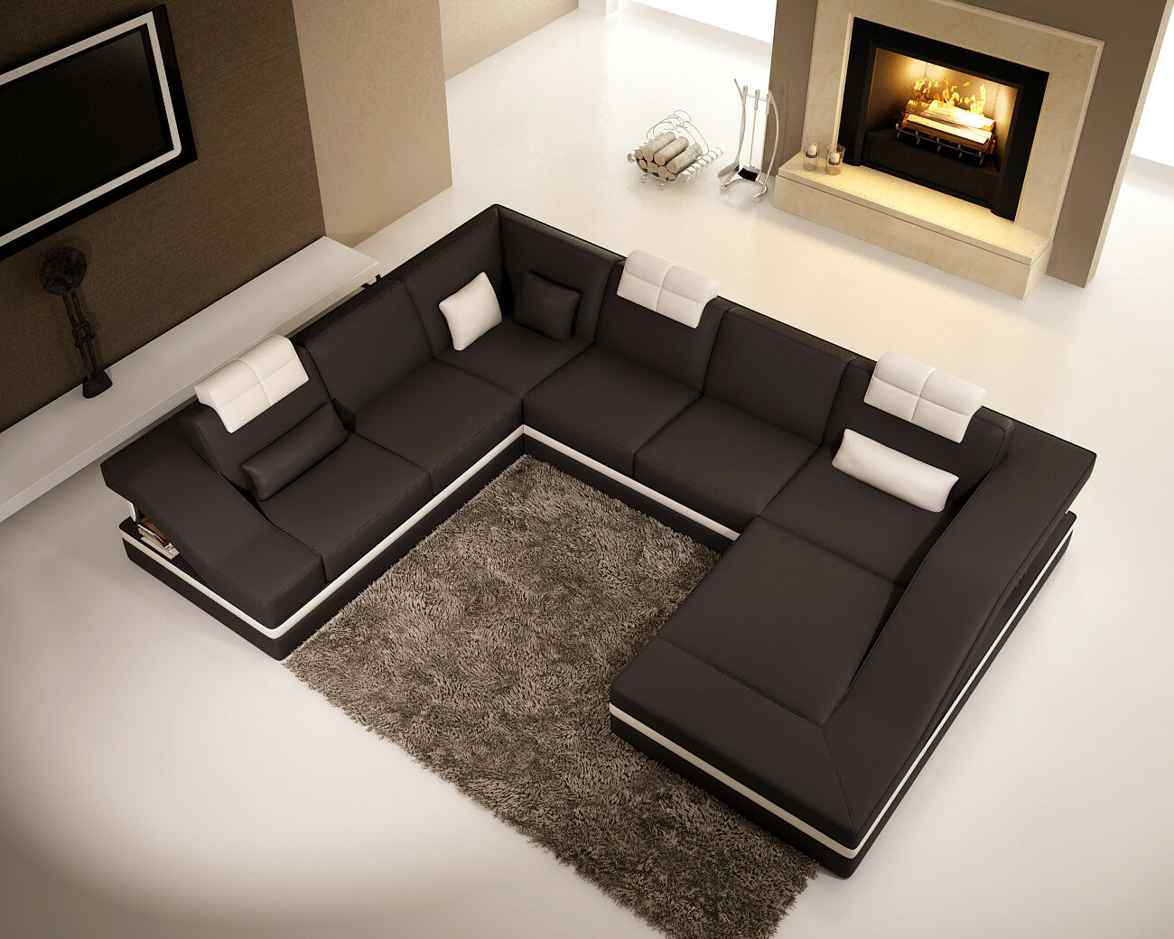 Sofà moderno d'angolo per soggiorno, divano modulare in pelle XXL grandissimo