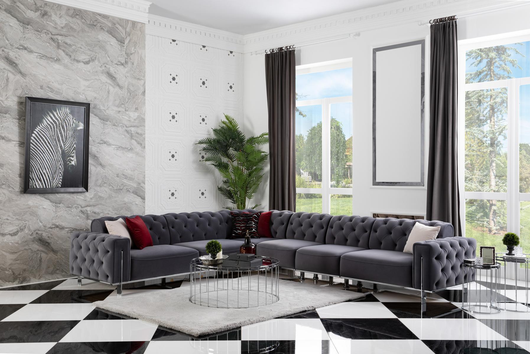 Divano ad angolo a L, arredamento per soggiorno, mobili Chesterfield, mobili moderni