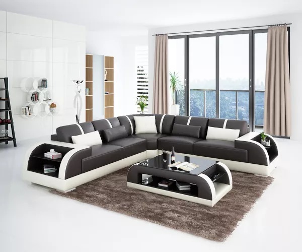 Disegno moderno Divano angolare Mobili soggiorno Divano angolare in pelle con rivestimento in pelle