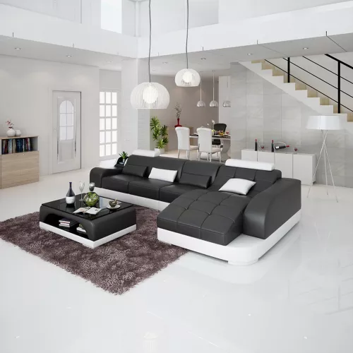 Divano ad angolo a forma di L moderno in pelle angolare divano imbottito soggiorno completo.