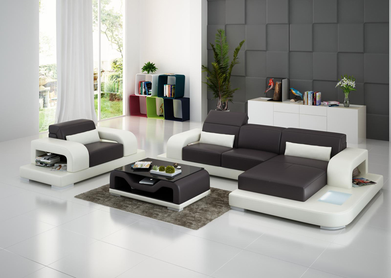 Divano ad angolo a forma di L, poltrona in legno moderna, tavolino completo da caffè, divano ad angolo, tavolino, nuovo.
