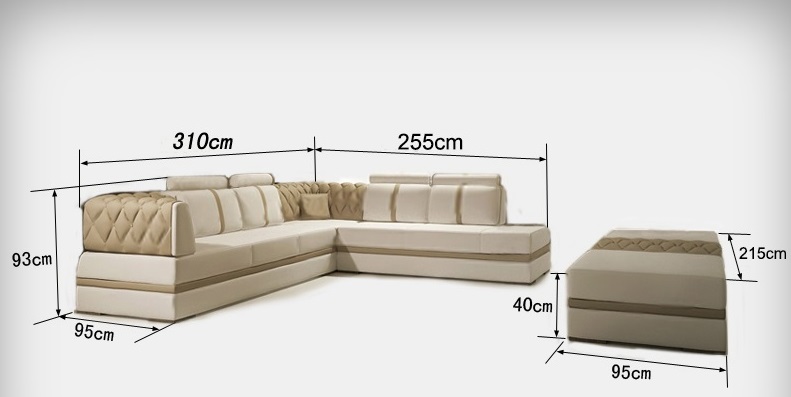 Sofà in pelle Divano Paesaggio abitativo Angolo Divano angolare Design Moderno Nuovo A1128 è un elegante divano angolare progettato per offrire comfort e stile contemporaneo alla tua casa. Con dimensioni generose e una struttura interna in legno reale, questo divano garantisce solidità e durata nel tempo. Il materiale principale utilizzato è un pregiato tessuto in fibra di pelle premium (70% pelle / 30% poliestere), che conferisce al divano un look raffinato e un tocco di lusso. La scelta del colore è libera, permettendoti di personalizzare il divano in base al tuo stile e alle tue preferenze.