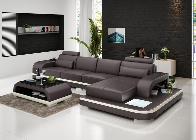 Design elegante e moderno - Divano d'angolo in pelle a forma di L per ambienti domestici senza tempo.