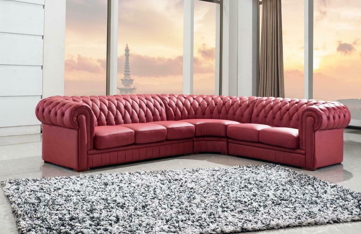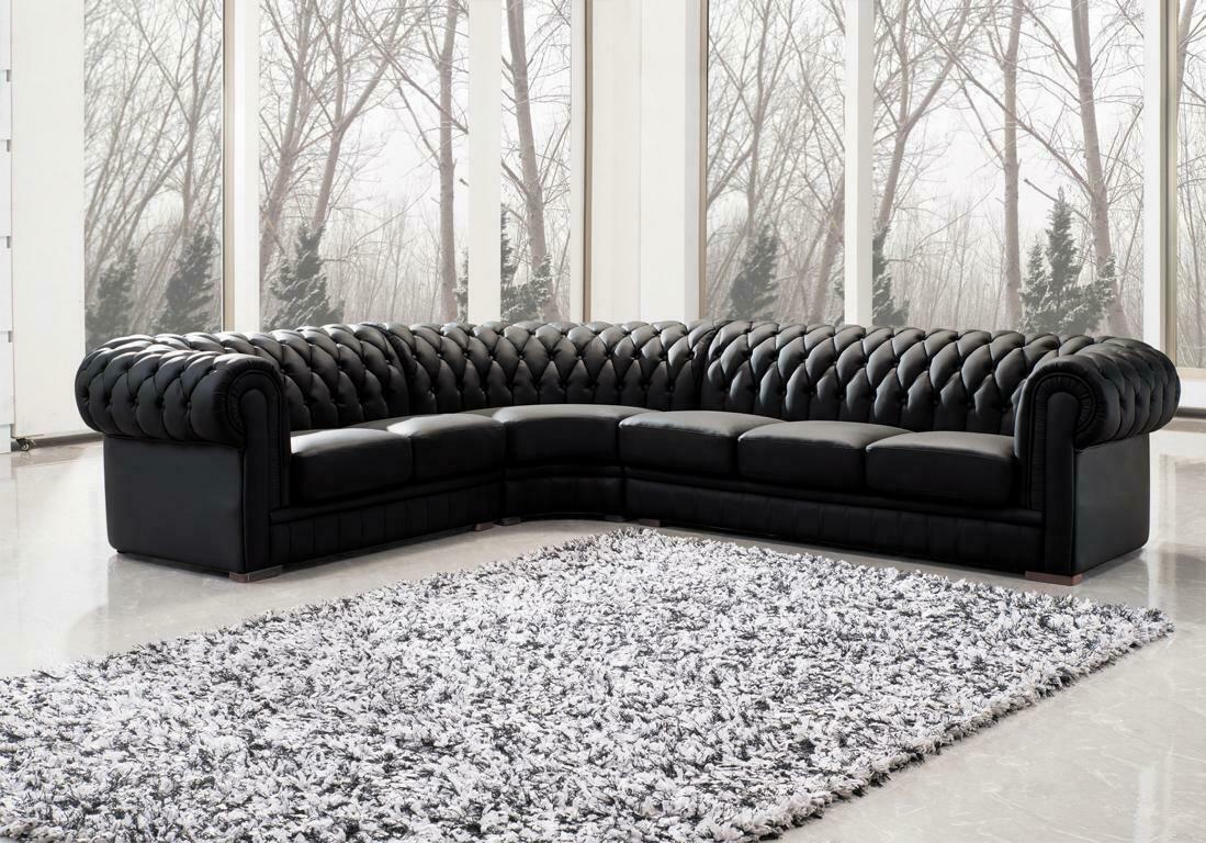 Classico Chesterfield imbottito angolare in pelle decoro set di divani salotto