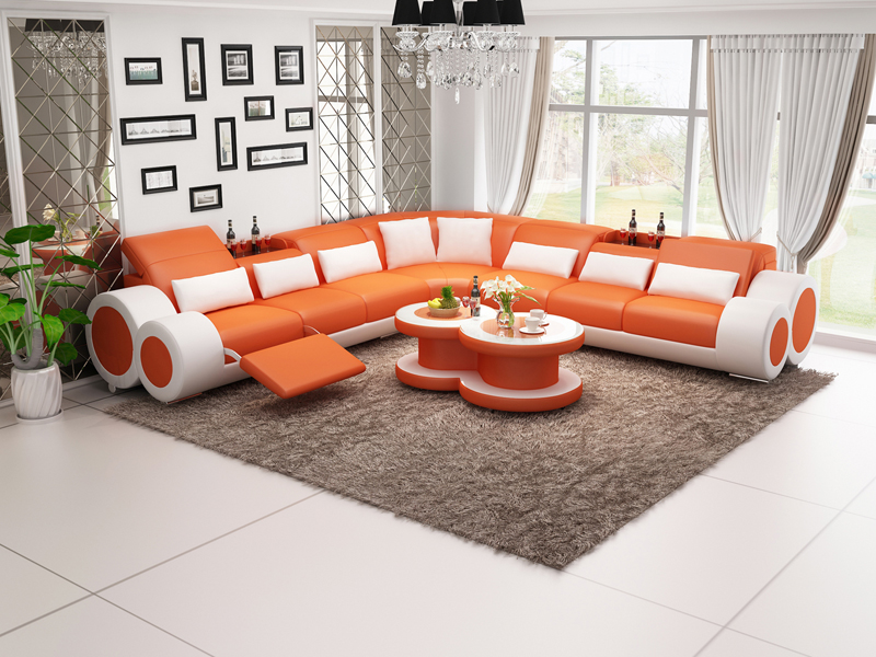 Sistema di sedute Designer Divano con USB Grandi divani in pelle imbottita angolo angolo seduta nera