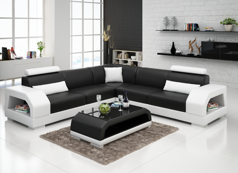 XXL divano ad angolo + USB, set di mobili in pelle per soggiorno di design moderno divano a forma di L G8001B