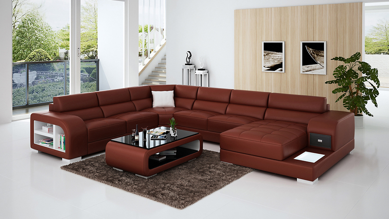 Design moderno del divano in pelle angolare con luce USB.