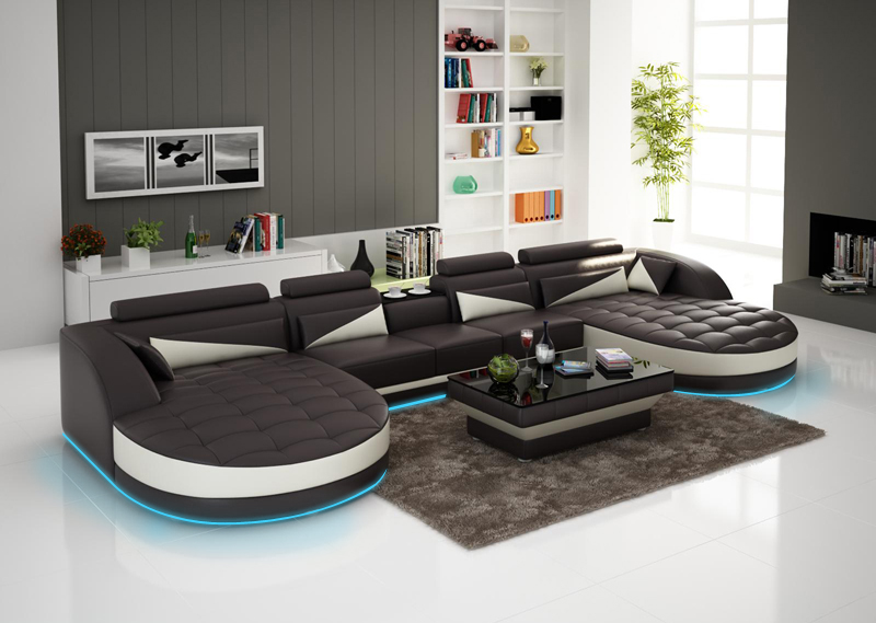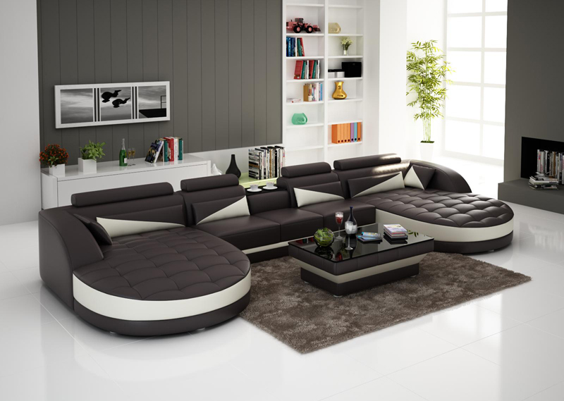 Design moderno divano ad angolo a forma di U per un soggiorno elegante.