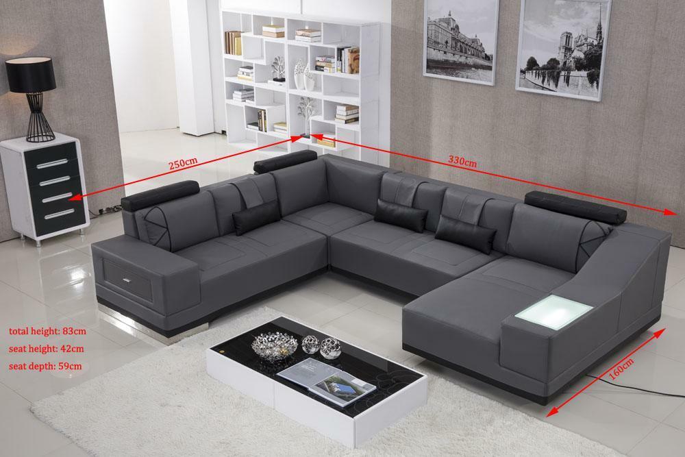 Divano ad angolo in pelle Big xxl a forma di U con decorazioni per il soggiorno.