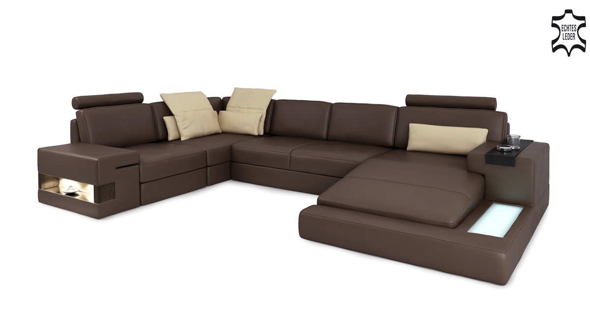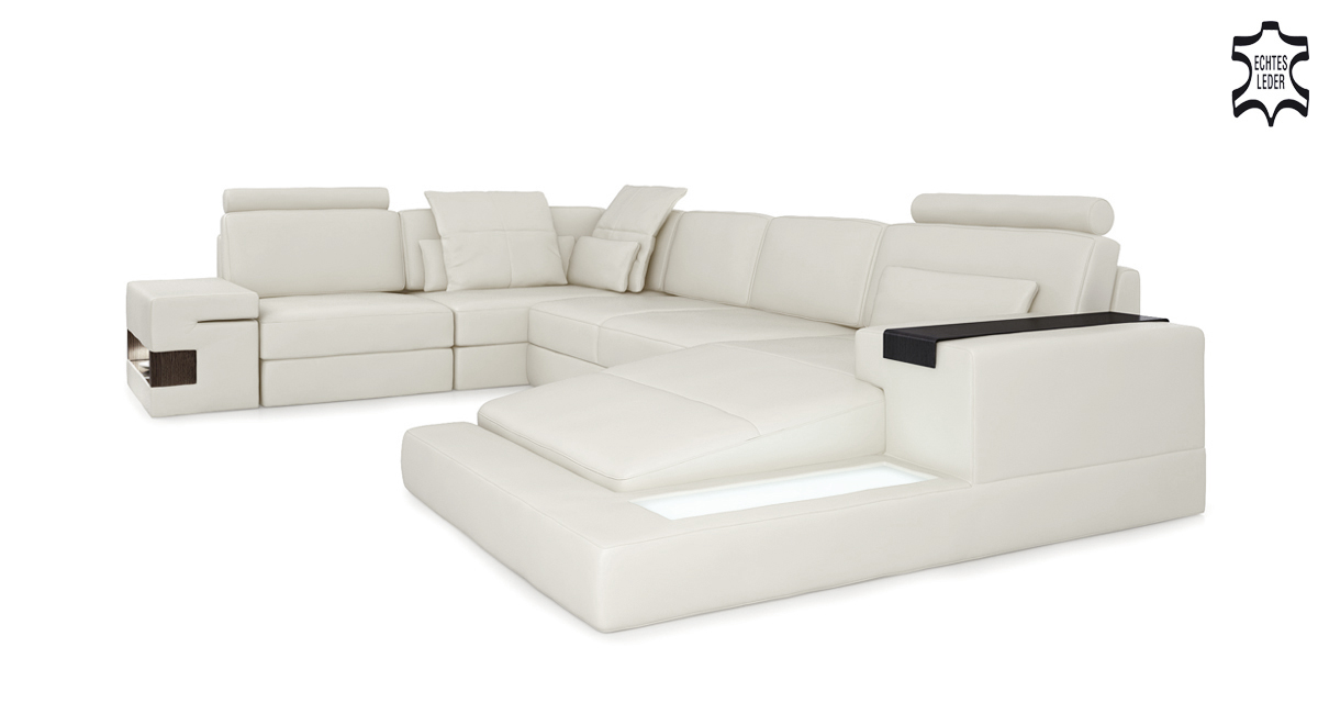 Divano ad angolo Divano Divano Imbottito a forma di U Living Design Divani XXL Big è un elegante divano ad angolo progettato per offrire comfort e stile senza compromessi. Con una struttura interna in legno massello e un nucleo a molle di alta qualità, questo divano assicura resistenza e durata nel tempo. La pelle bovina italiana di lusso conferisce un tocco di raffinatezza e classe a qualsiasi ambiente, mentre le dimensioni generose e la forma a U offrono un'ampia area per rilassarsi e intrattenere ospiti.