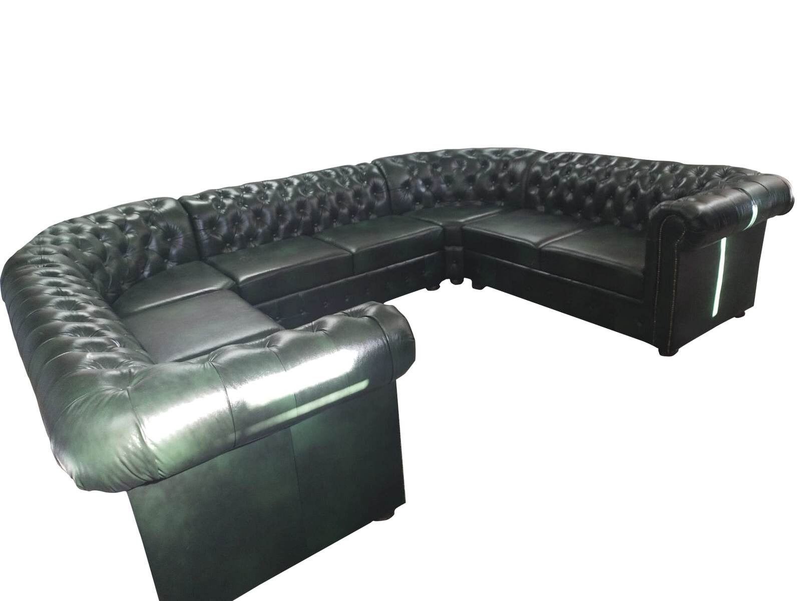 Divano ad angolo Chesterfield a forma di U, divano in pelle angolare, divano in pelle moderno nuovo.