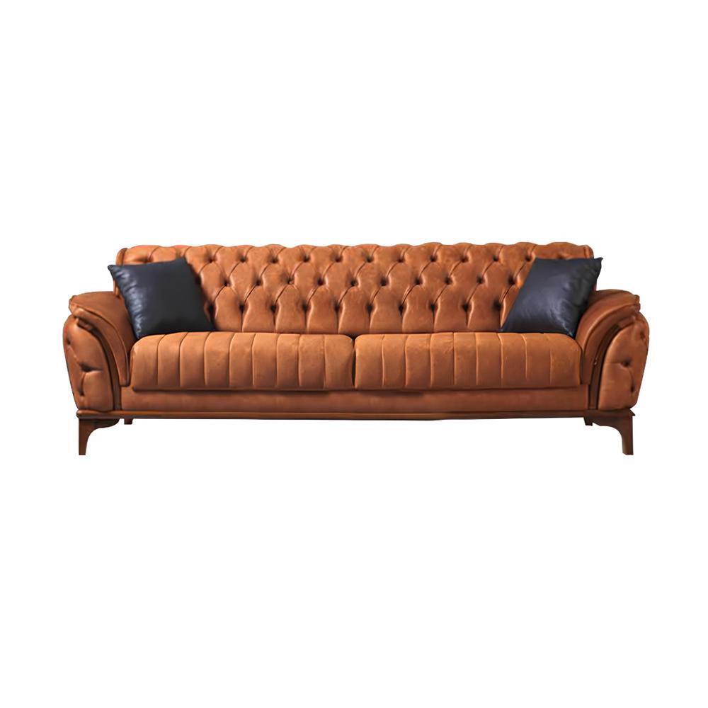 Chesterfield arancione a 3 posti, divano da soggiorno di lusso moderno ed elegante.