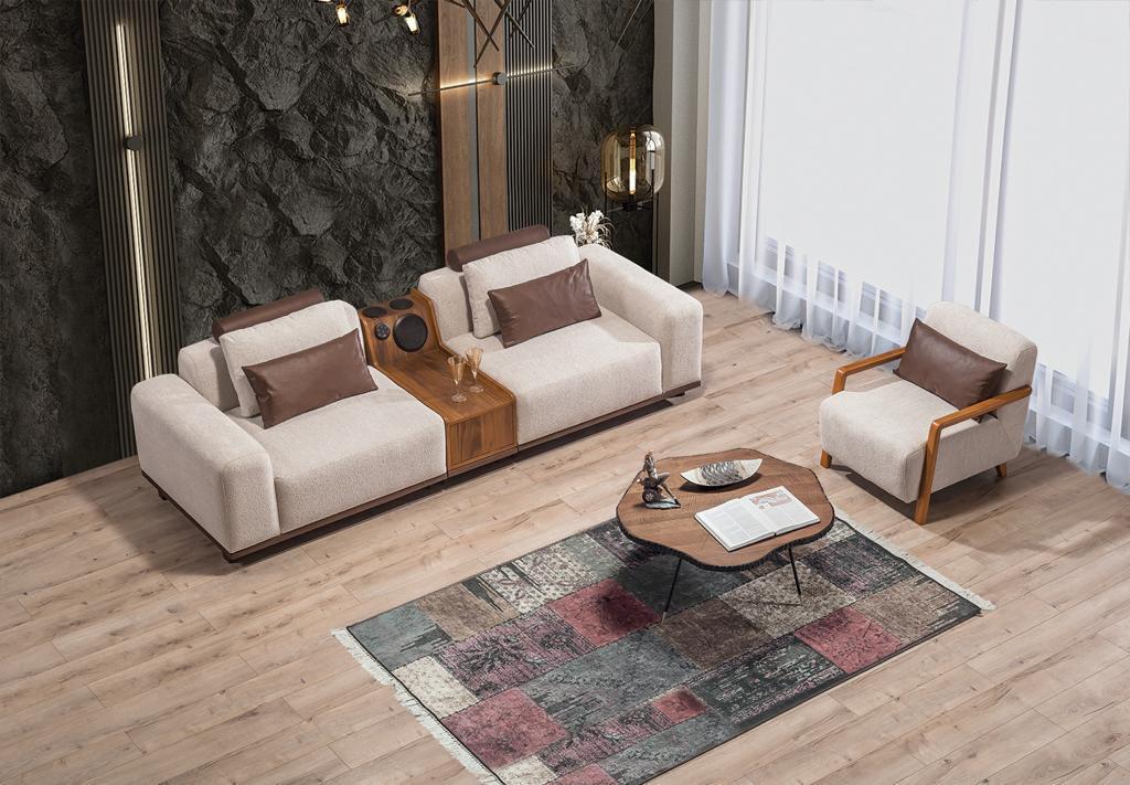 Divano esclusivo color beige a due posti per il soggiorno, moderno divano a due posti