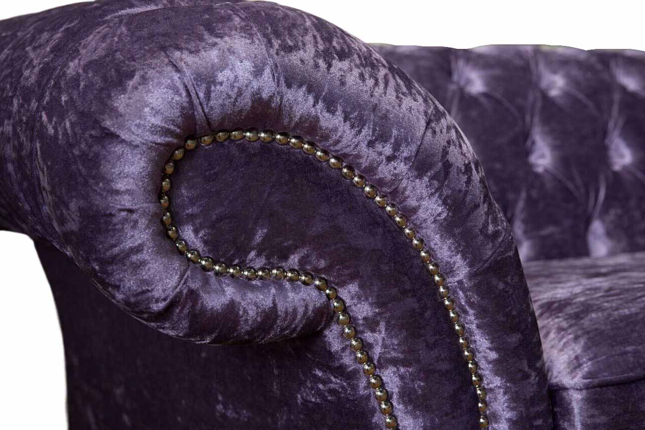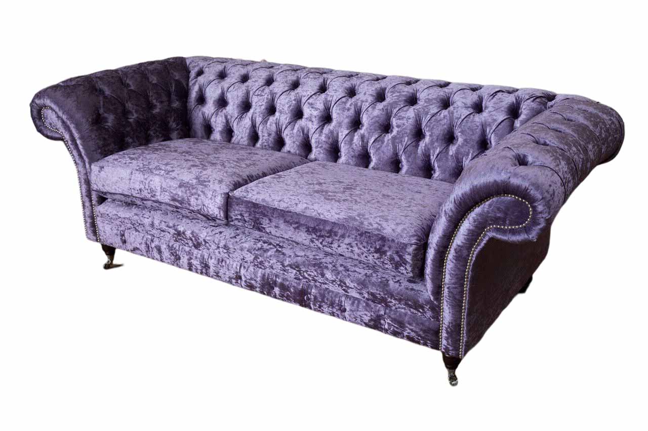 Chesterfield divano a tre posti 3 posti letto in stile soggiorno viola in tessuto.
