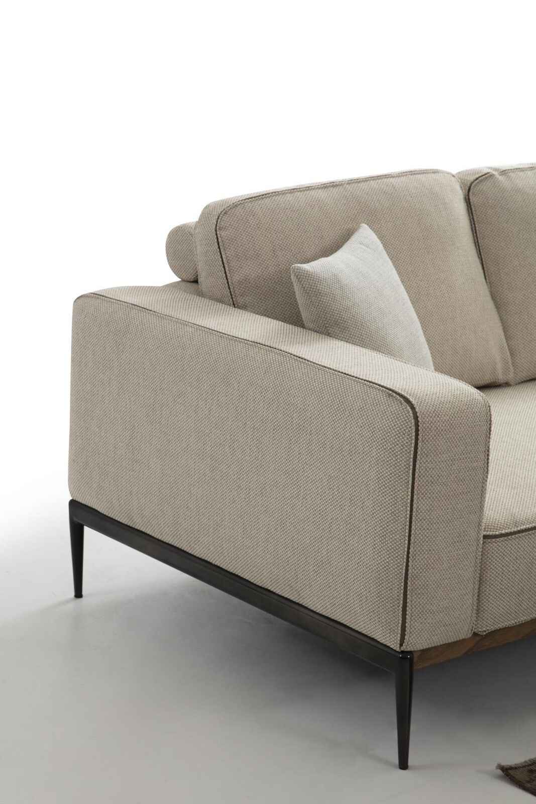 Divano a 4 posti in tessuto beige design moderno per soggiorno.
