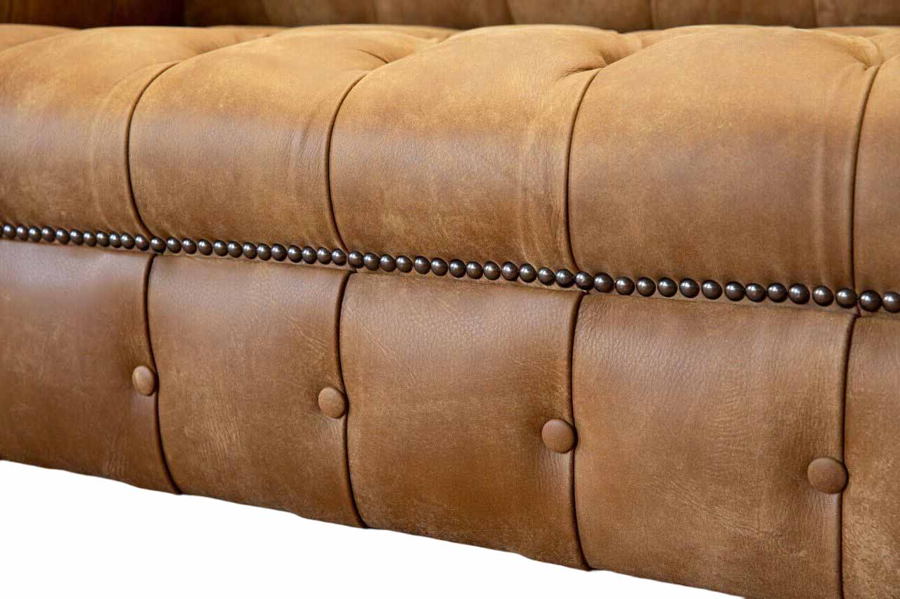 Divano 4 posti Chesterfield imbottito Design lussuoso in legno nuovo: Scopri il massimo comfort e l'eleganza con il divano 4 posti Chesterfield imbottito. Con dimensioni di ca. 245 x 80 x 90 cm, questo capolavoro di design offre un'esperienza di seduta superba grazie all'altezza della seduta di ca. 42 cm e alla profondità di ca. 52 cm. La struttura interna in vero legno e il nucleo a molle assicurano una resistenza e una durata superiori.