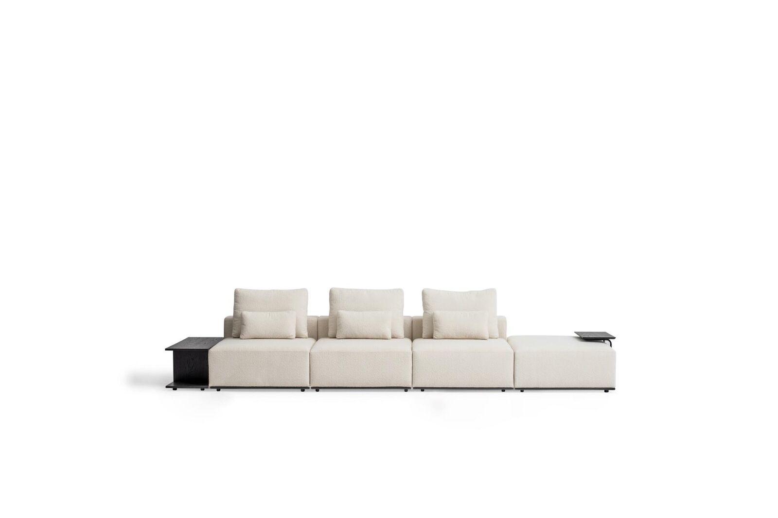 Divano in tessuto bianco a cinque posti per la zona giorno, divano imbottito reclinabile.