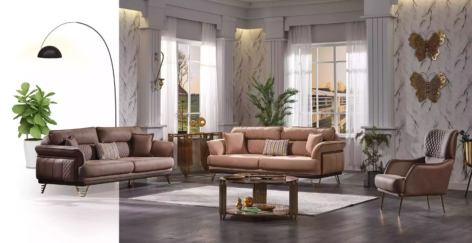 Beige divano di lusso a tre posti, Divano moderno per soggiorno, Stile a tre posti.