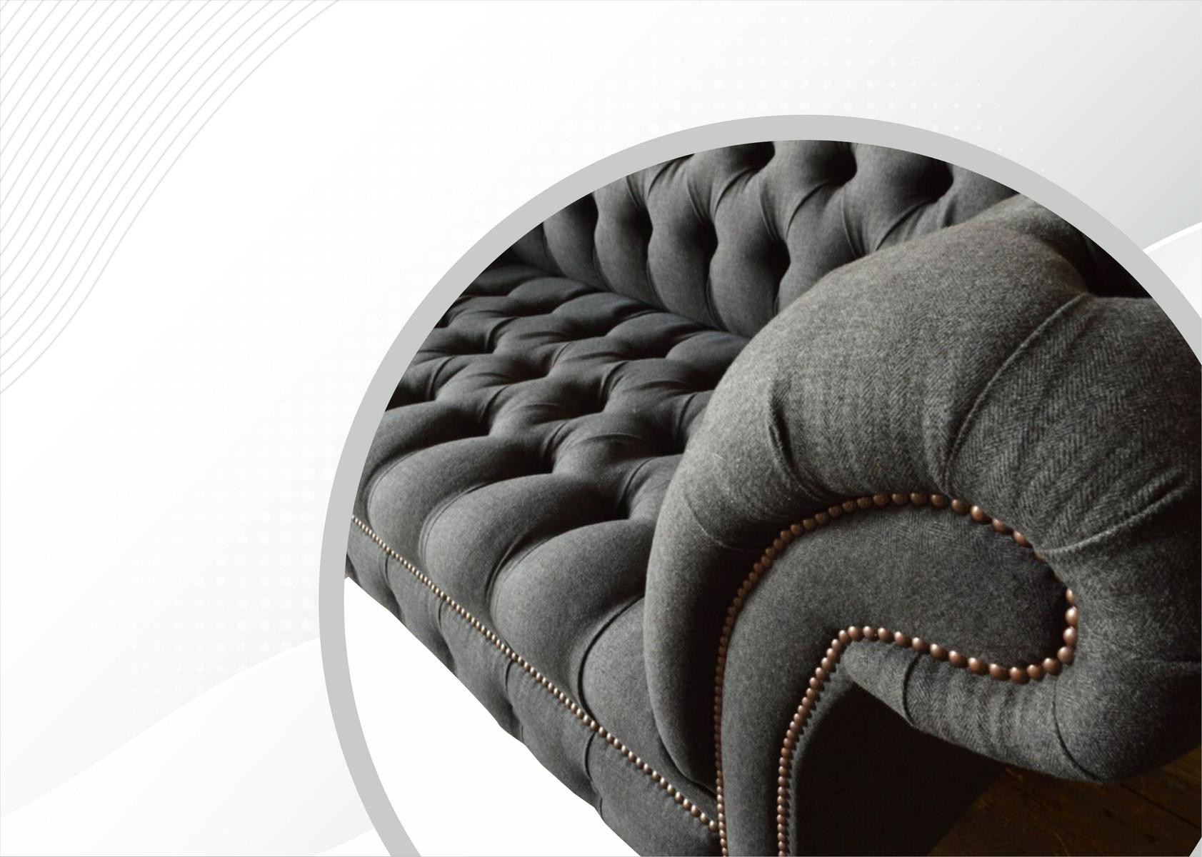 Chesterfield 3 posti in tessuto grigio scuro, design moderno, divani, divano, mobili da designer.