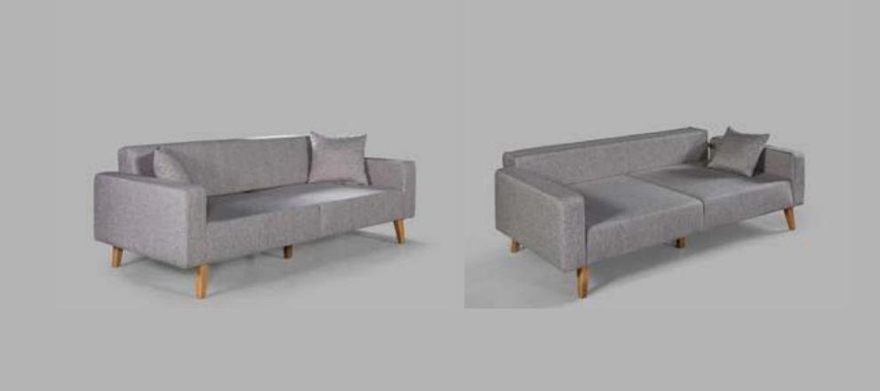 Sofà a tre posti in tessuto grigio per il soggiorno