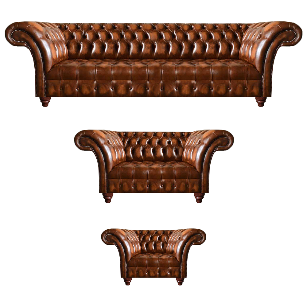 Chesterfield Brown Leather Suite Living Room Sofas Leather Couches 3 pieces