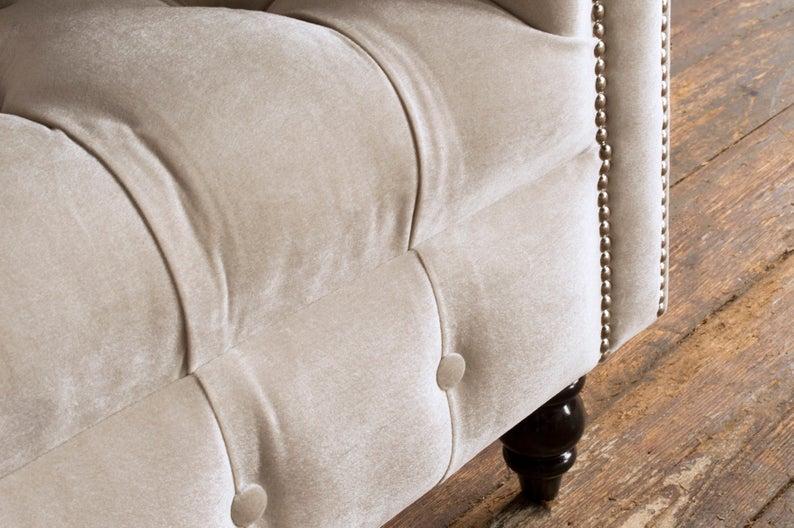Aggiungi stile e comfort al tuo spazio con la poltrona divano televisivo 1 posto Chesterfield #4. Con dimensioni di circa 110cm x 90cm x 80cm, questa poltrona offre un design elegante e una costruzione robusta. L'altezza della seduta di circa 44cm e la profondità della seduta di circa 60cm garantiscono un comfort ottimale per lunghe sessioni di relax. Puoi personalizzare ulteriormente il tuo divano scegliendo tra diverse opzioni, come il materiale di rivestimento in tessuto di alta qualità e la possibilità di aggiungere cristalli Swarovski per un tocco di lusso.