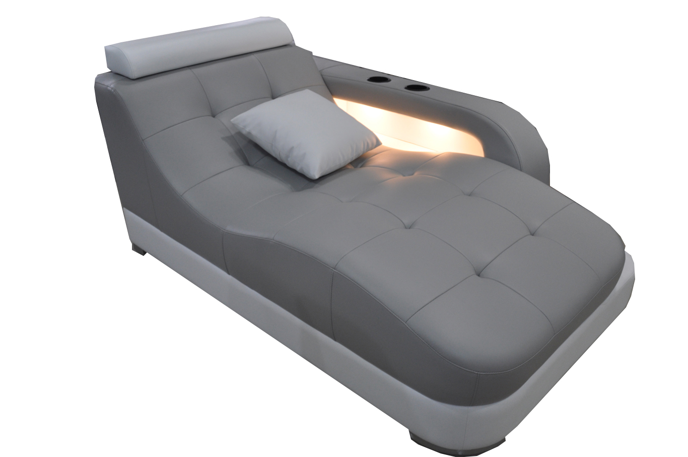 Designer Divano Chaise longue in Pelle Grigio Moderno Lettino Pouf Divano in Pelle Vera Relax