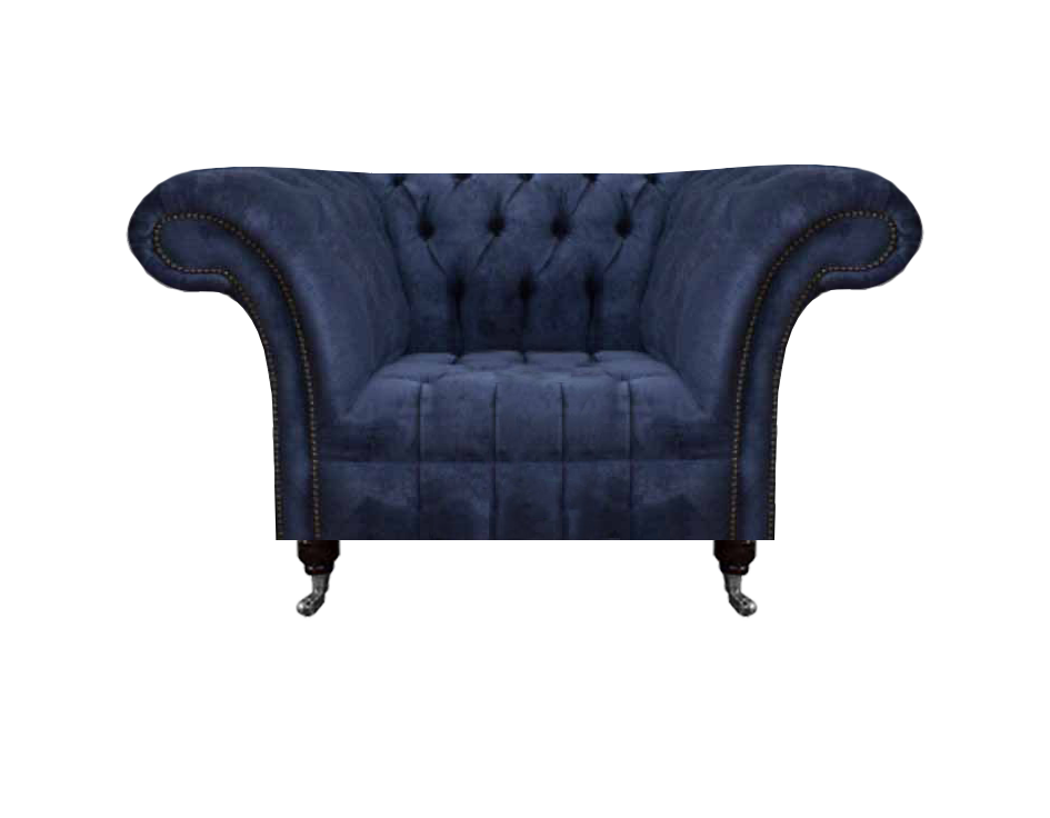 Blu scuro Chesterfield poltrona da salotto monoposto in tessuto nuova.