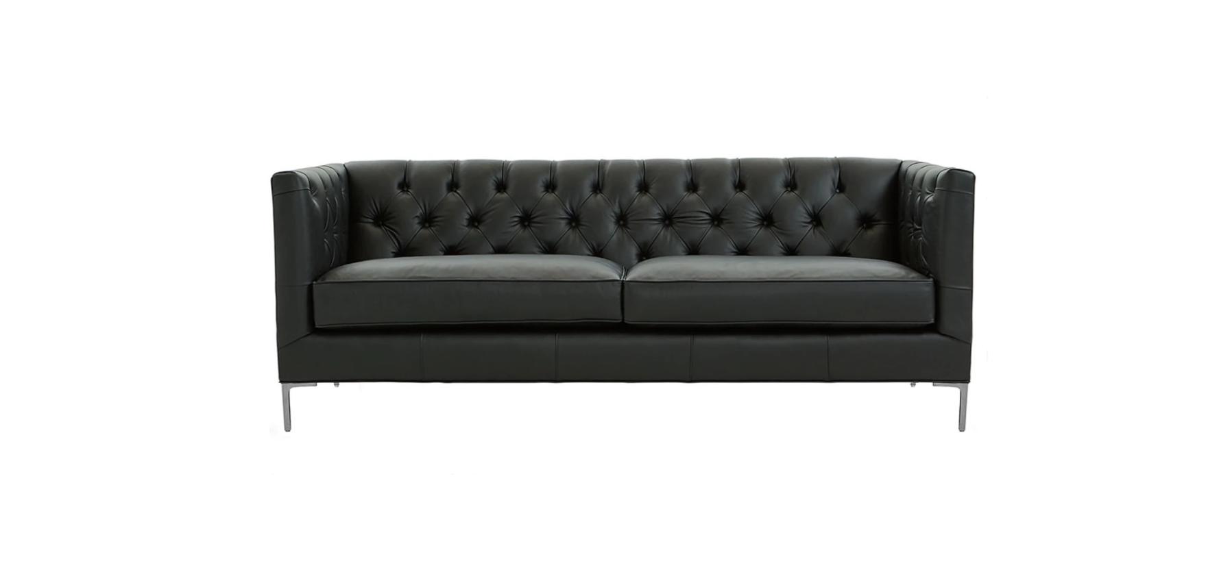 Arredamento soggiorno divano design divani neri Stile Italiano Mobili Tessuto è un elegante divano Chesterfield caratterizzato dalle sue generose dimensioni di circa 230 x 90 x 77cm, che offrono spaziosità e comfort. Con un'altezza seduta di circa 42cm e una profondità seduta di circa 55cm, questo divano garantisce un'esperienza di seduta rilassante e accogliente. Realizzato in pregiata pelle italiana bovina a grana fino a 2,50mm di spessore, questo divano si distingue per la sua qualità artigianale e duratura.