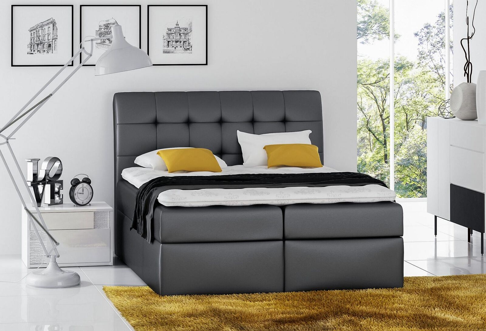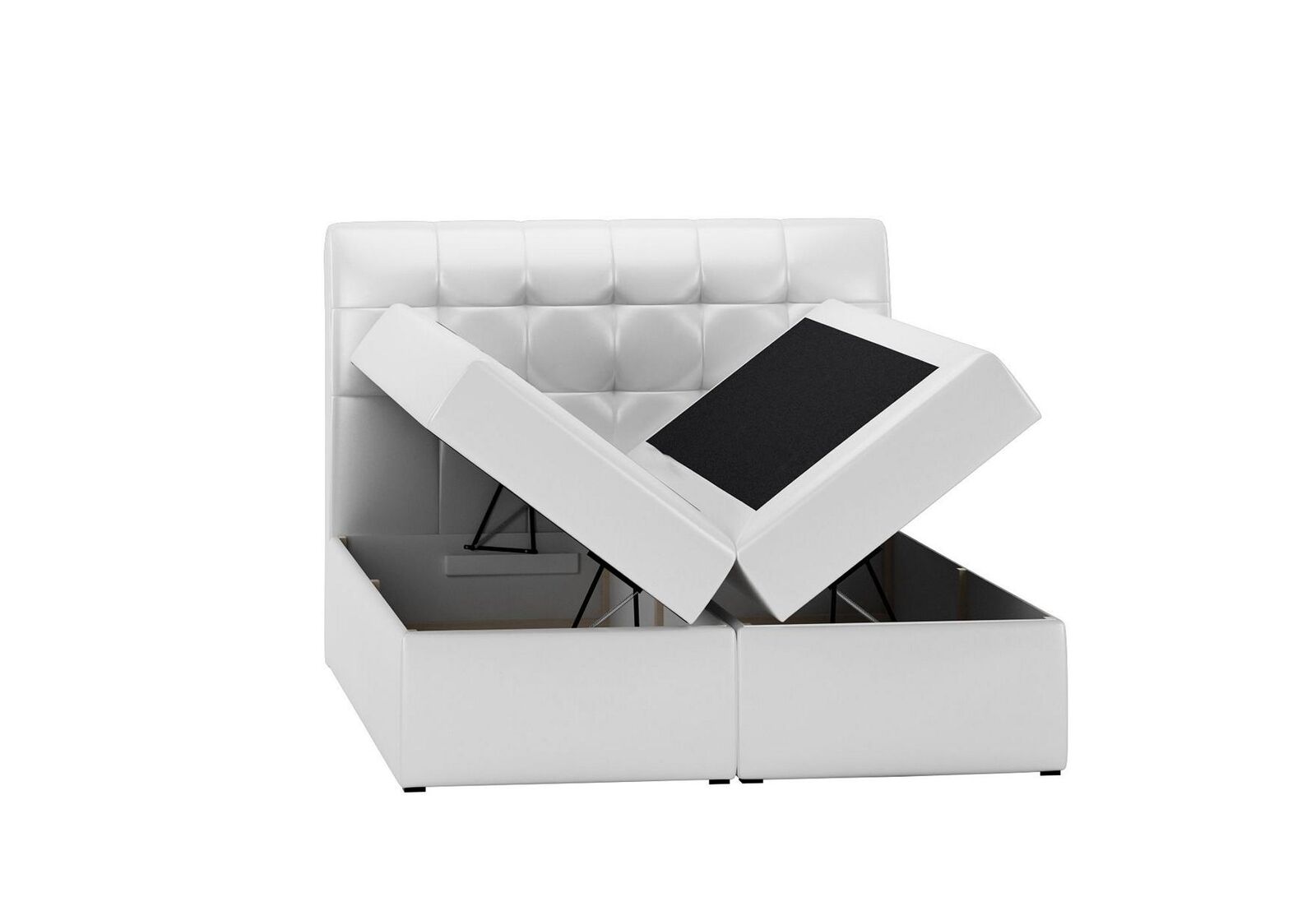 Il nostro letto contenitore camera da letto offre comfort e funzionalità in un design elegante e moderno. Questo letto boxspring doppio è perfetto per l'arredamento di hotel e camere da letto di lusso. Con una superficie di riposo di ca. 180 x 200 cm, garantisce ampio spazio per un sonno ristoratore. La struttura interna in legno massello assicura solidità e durata nel tempo, mentre il materasso principale con molle insacchettate in schiuma T30 e il topper in schiuma flessibile offrono un sostegno ottimale per un riposo confortevole. Il meccanismo a molla facilita l'apertura dei contenitori sotto il letto, offrendo un pratico spazio di stivaggio. Con la scelta del colore e del materiale, puoi personalizzare il letto secondo i tuoi gusti e la tua camera.