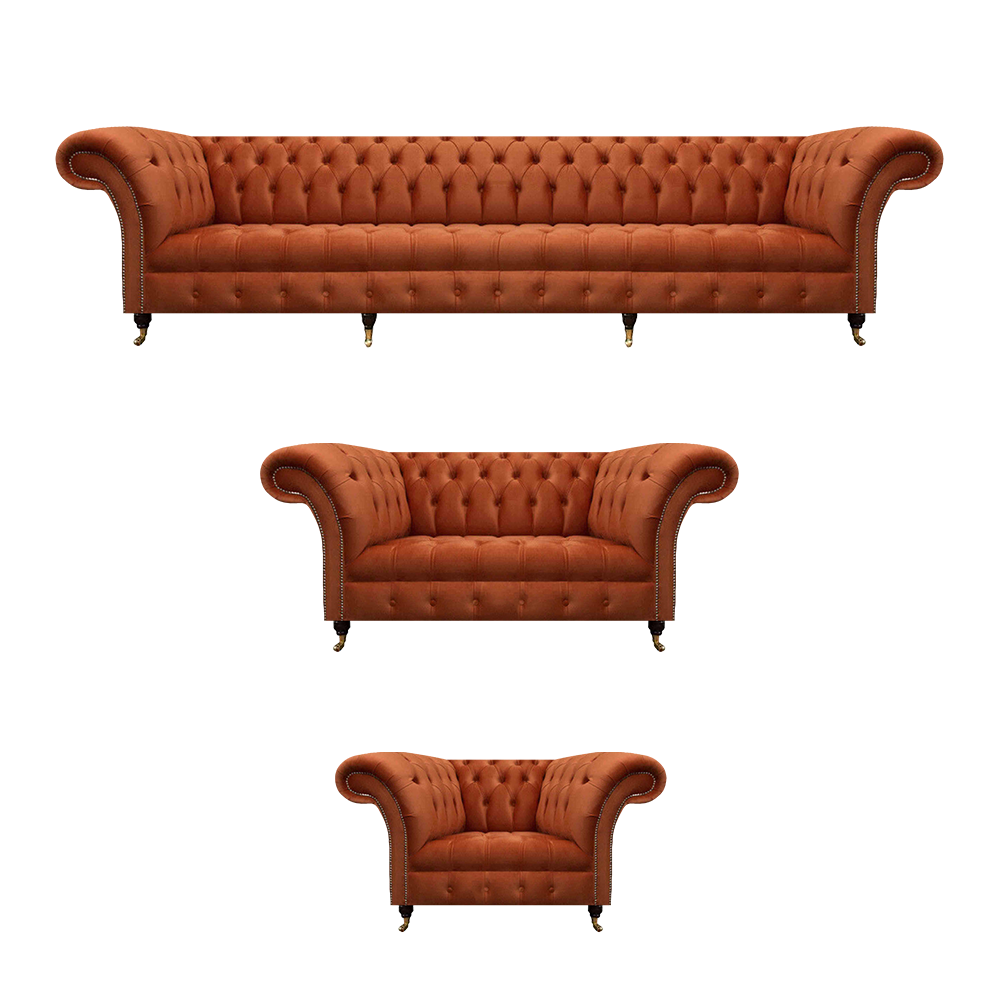Descrizione del prodotto: Marrone Chesterfield set di divani imbottiti di design completo 3 pezzi