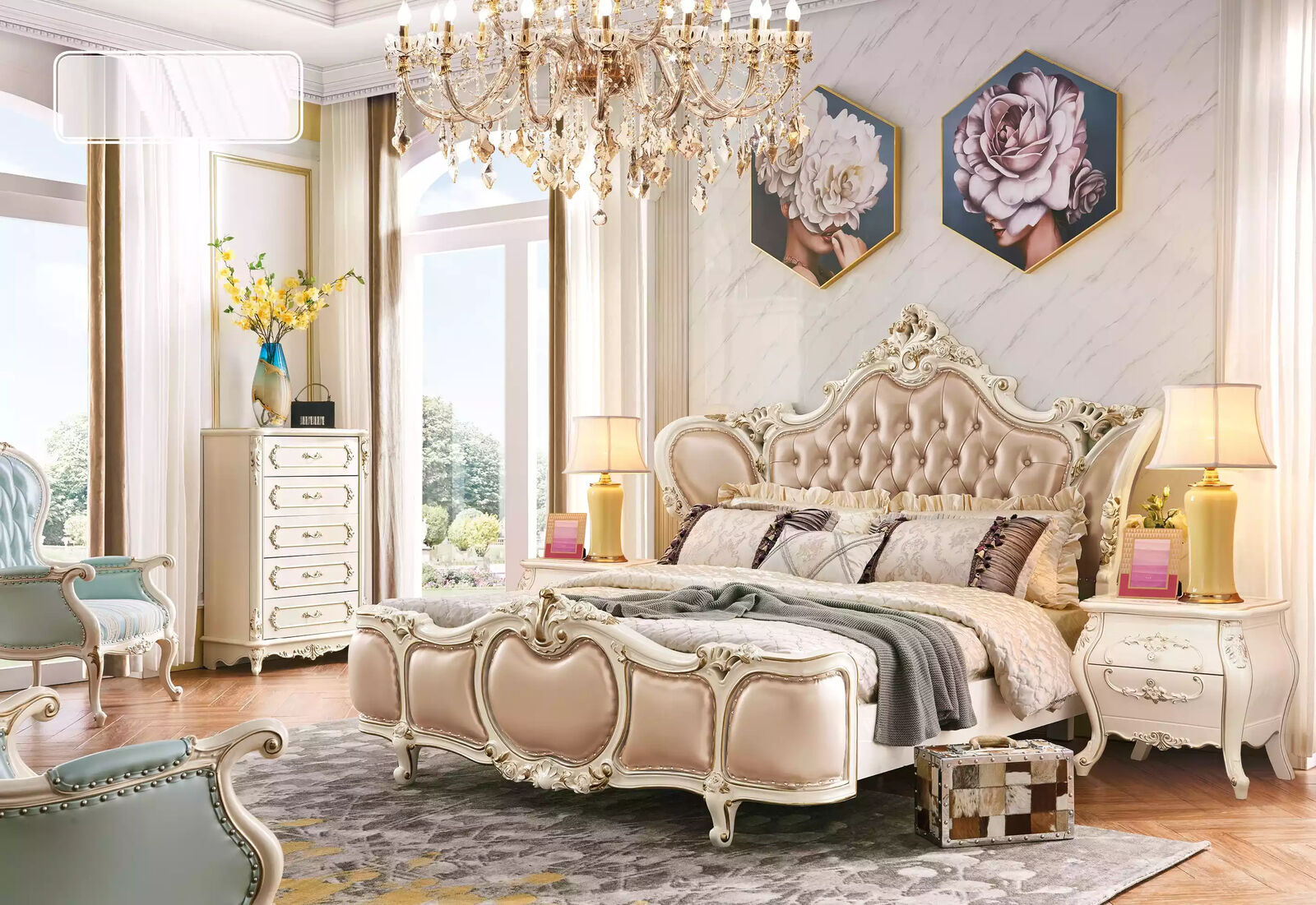 Camera da letto, letto, comodino, Chesterfield