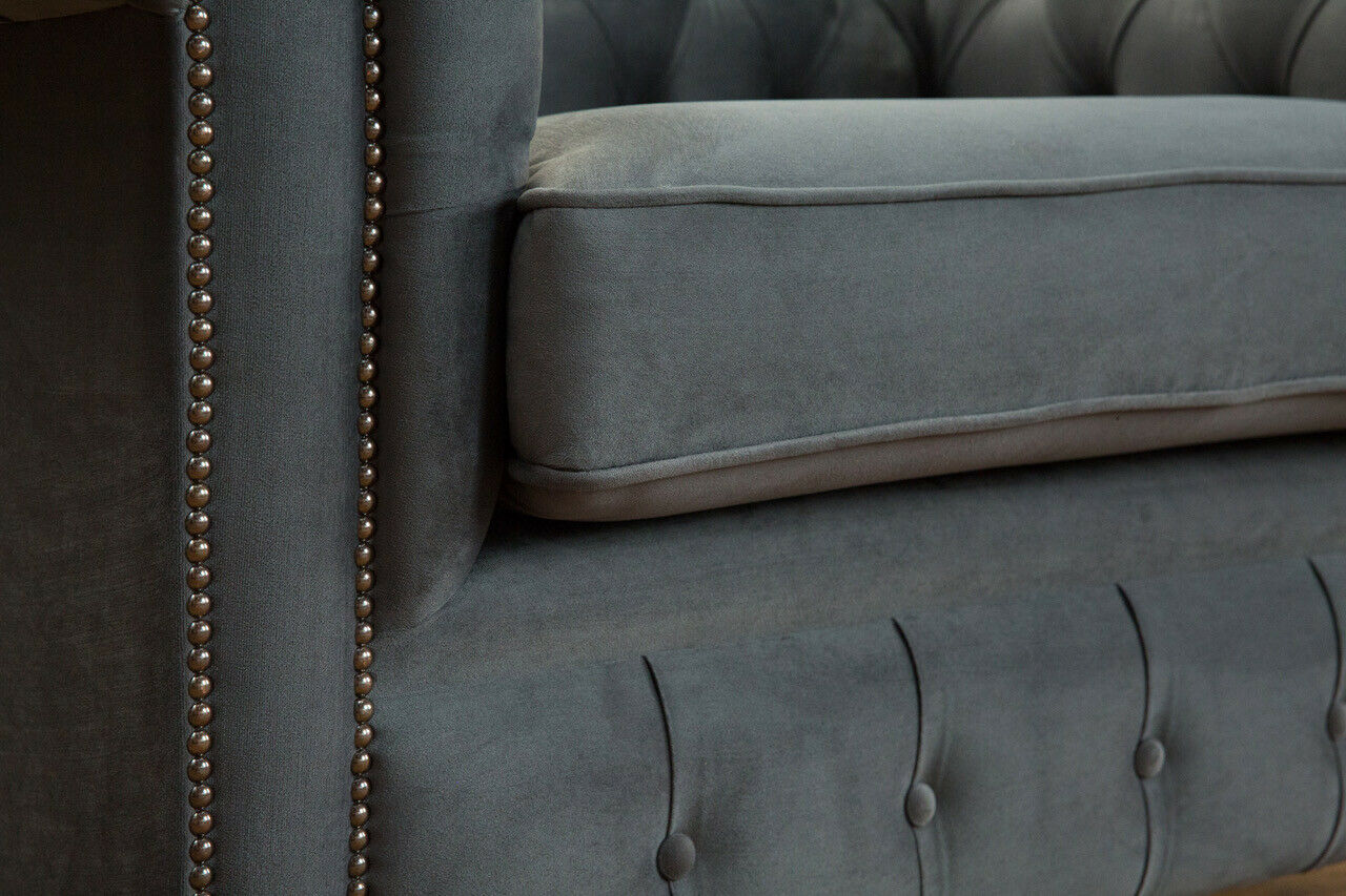 La poltrona divano imbottita di lusso Chesterfield Design in tessuto a un posto è l'emblema dell'eleganza e del comfort. Con le sue dimensioni di 130 x 98 x 79 cm e un'altezza seduta di circa 42 cm, questo pezzo si distingue per la sua pregiata costruzione in pelle sintetica premium. La struttura interna in legno massello garantisce durata e resistenza nel tempo, offrendo un'esperienza di seduta impeccabile. Il design classico Chesterfield si combina con dettagli moderni come la possibilità di scegliere tra diverse opzioni di rivestimento e di personalizzazioni, tra cui cristalli Swarovski veri per un tocco di lusso.