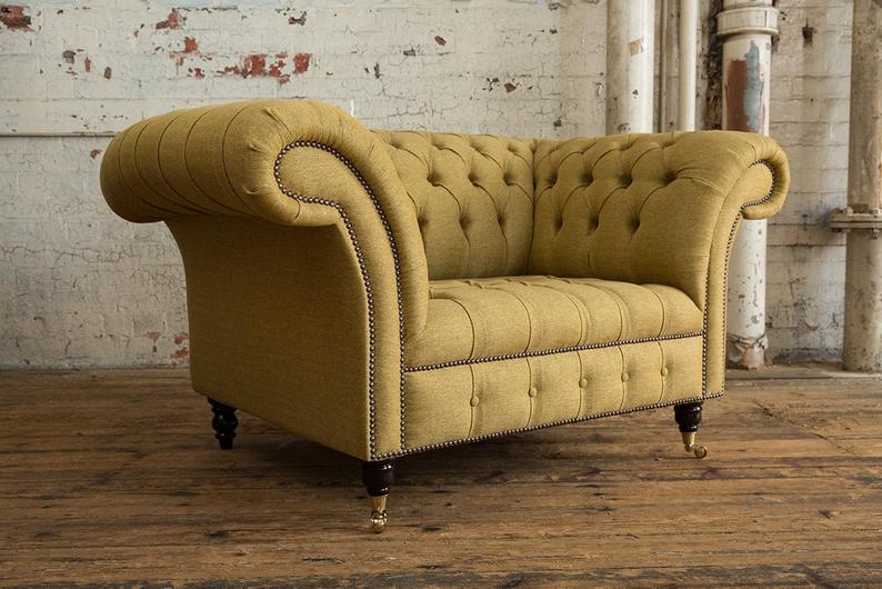 Divano Chesterfield Design Poltrona Divano Imbottito di Lusso in Tessuto 1 Posto #100