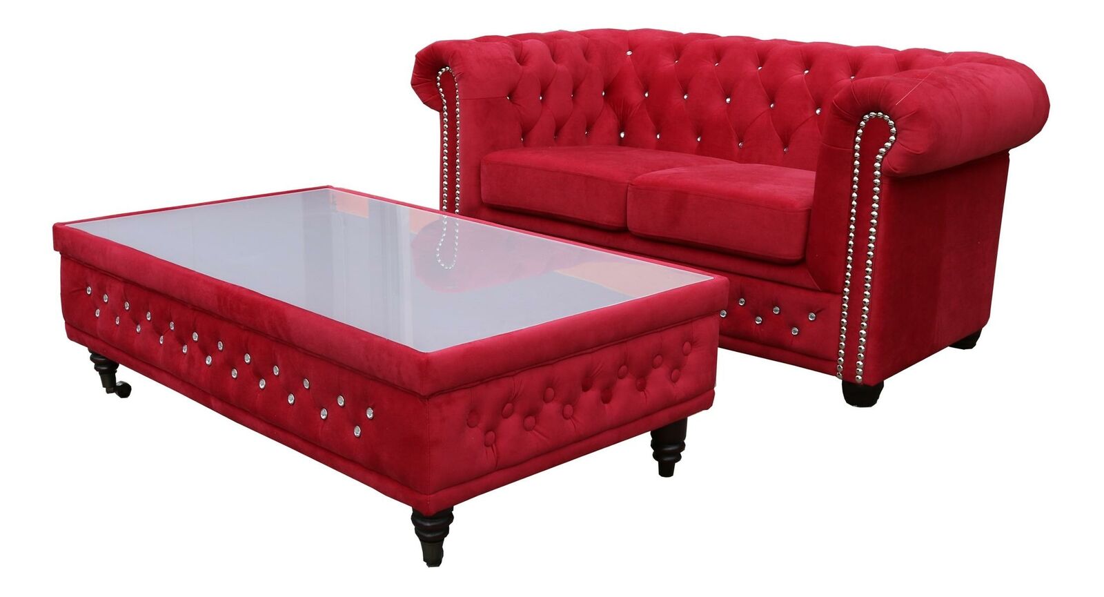 Chesterfield divano in tessuto imbottito a 2 posti divani in tessuto divani due posti rossi.