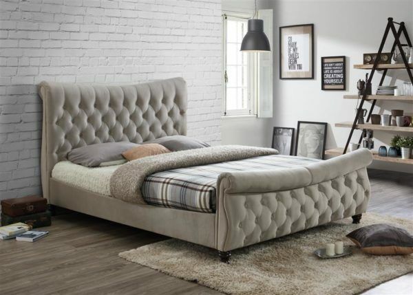 Chesterfield tessile letto imbottito, letti di design beige hotel camera da letto matrimoniale.