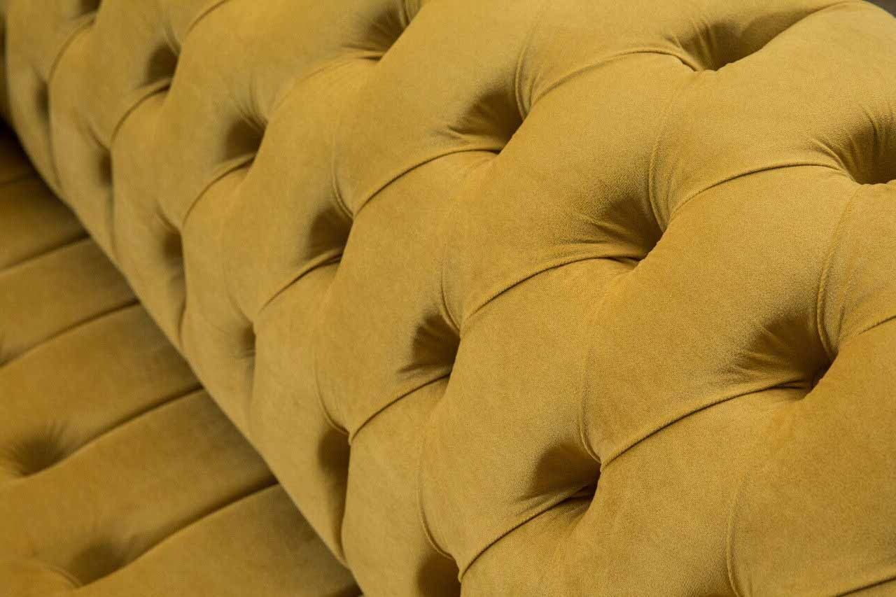 Elegante divano design a 4 posti in tessuto di lusso Chesterfield giallo: Aggiungi un tocco di classe e comfort al tuo salotto con questo splendido divano Chesterfield giallo a 4 posti. Con le sue dimensioni generose e il design elegante, questo divano si distingue per la sua qualità e stile imbattibili. Realizzato con materiale di lusso in tessuto, offre una seduta comoda e accogliente per te e i tuoi ospiti. L'**esclusivo design Chesterfield** aggiunge un tocco di raffinatezza e sofisticatezza al tuo ambiente domestico.