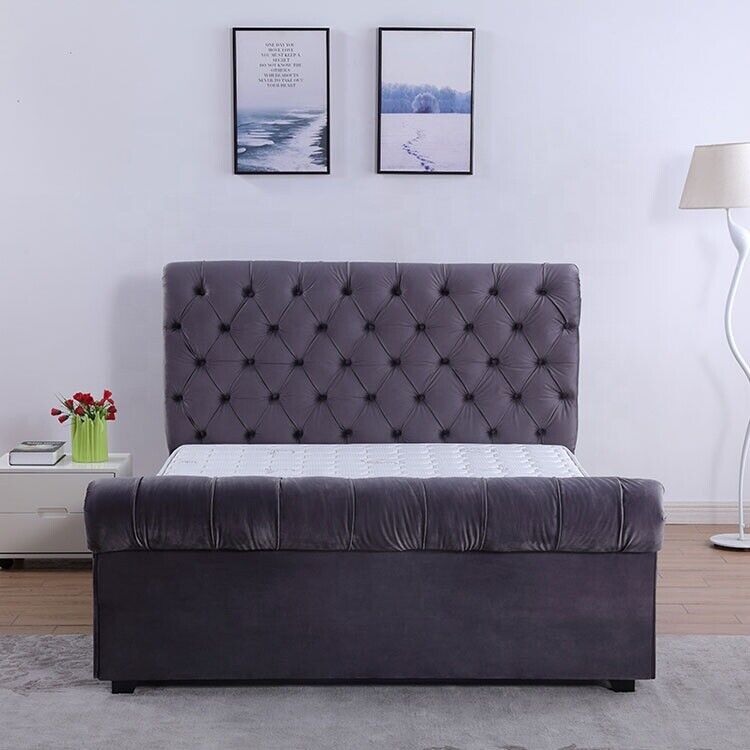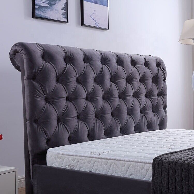 Design Chesterfield letto in tessuto pelle Hotel Letti Camera da letto Nuovo Velluto Imbottito