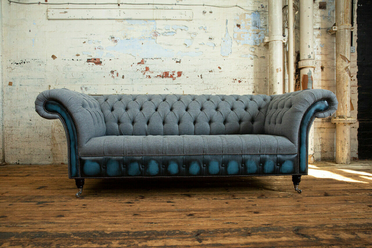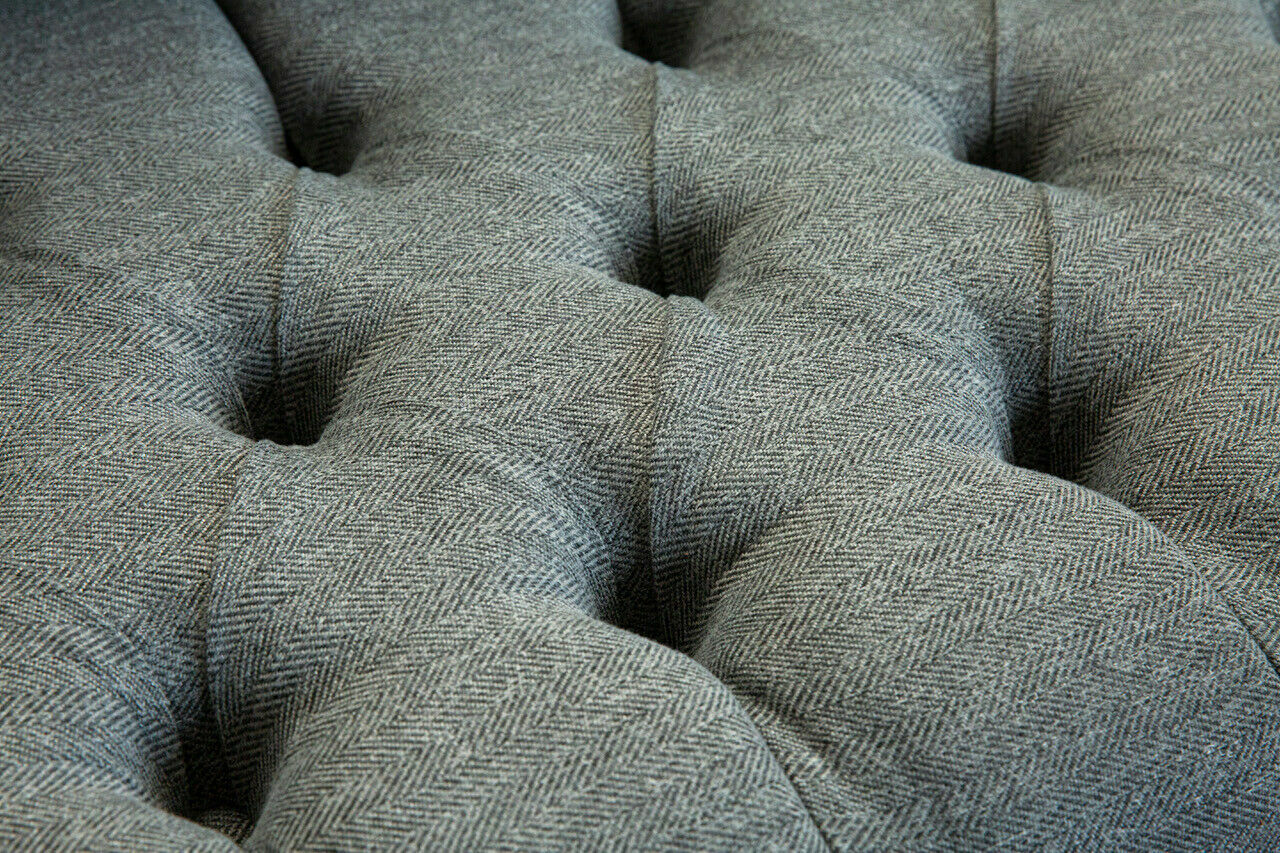 Designer divani Chesterfield grigi, divani imbottiti in tessuto per il relax.